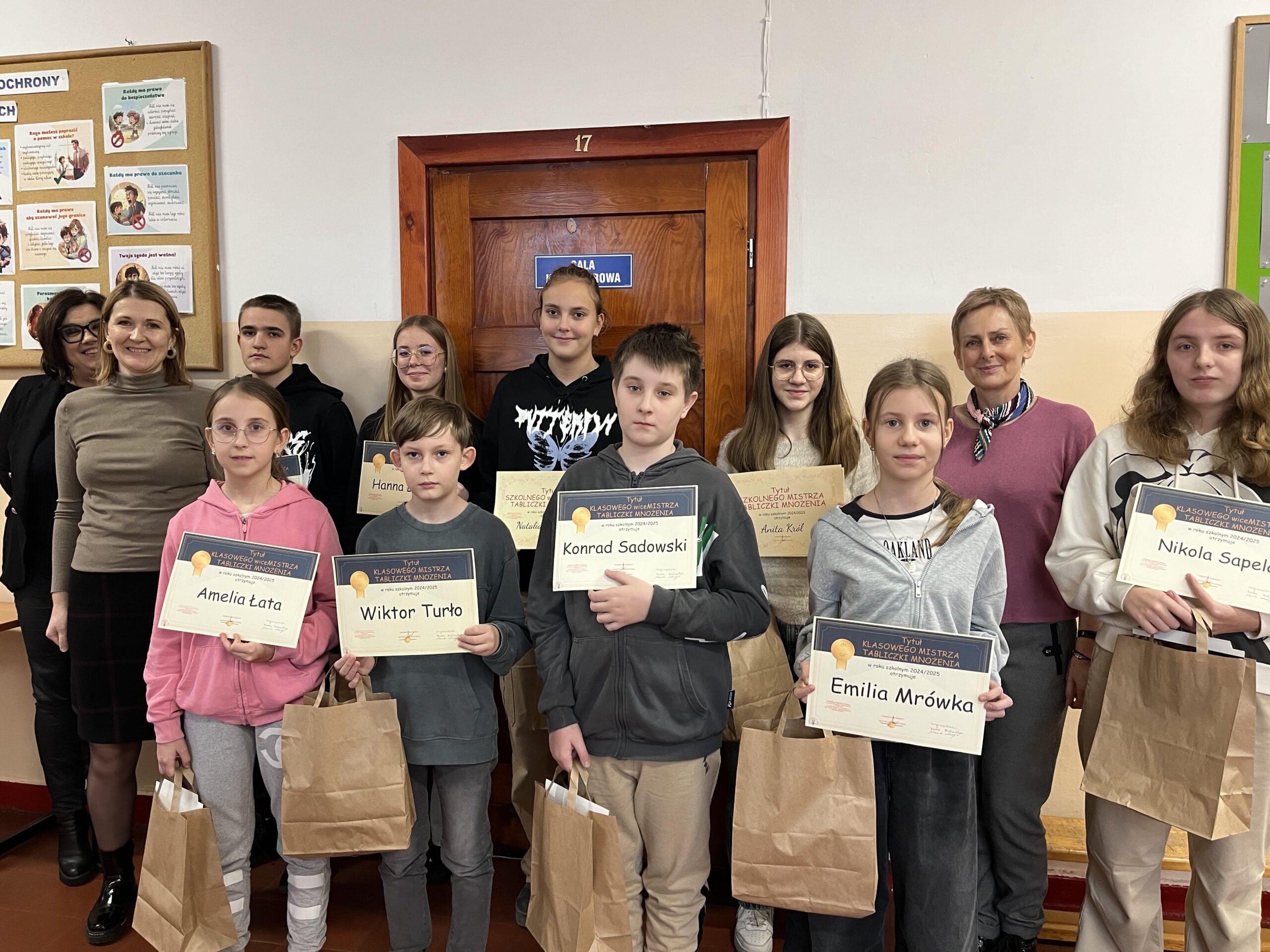 W listopadzie zakończył się w naszej szkole konkurs matematyczny z tabliczki mnożenia w klasach IV-VIII. Celem było perfekcyjne opanowanie tej umiejętności. Zostali wyłonieni mistrzowie i wicemistrzowie w każdej klasie.