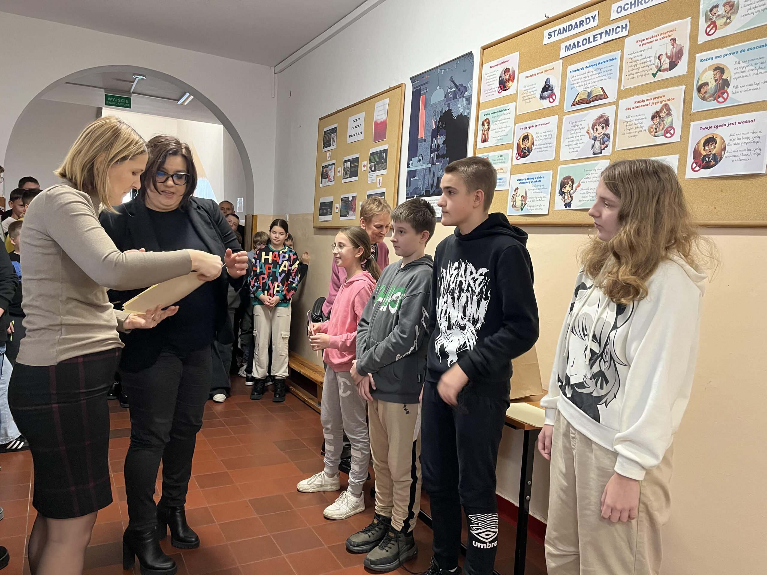 Nagrody i dyplomy wręczyła Pani Dyrektor. Dziękujemy Radzie Rodziców i  Sponsorom za wsparcie finansowe tego przedsięwzięcia.