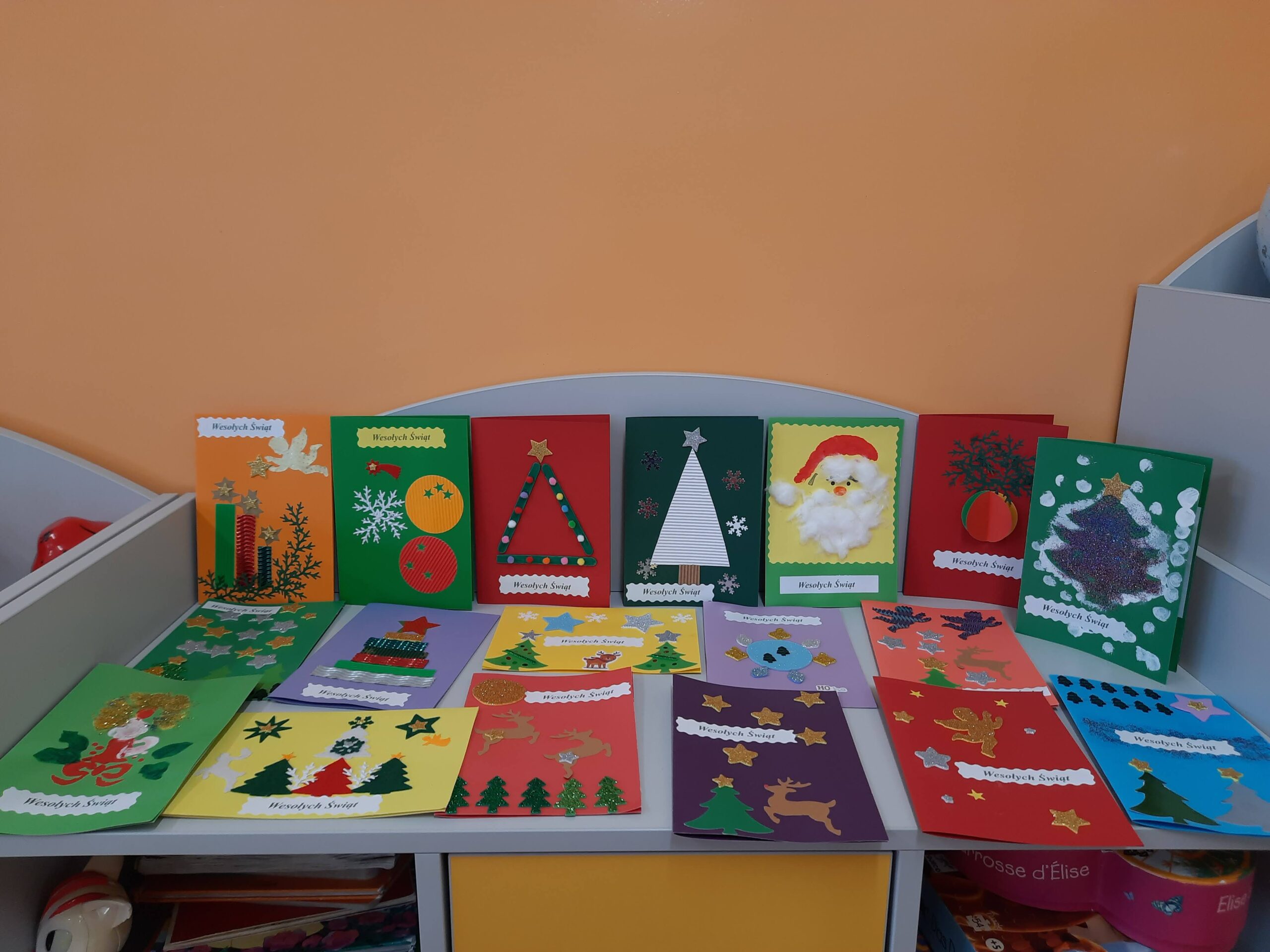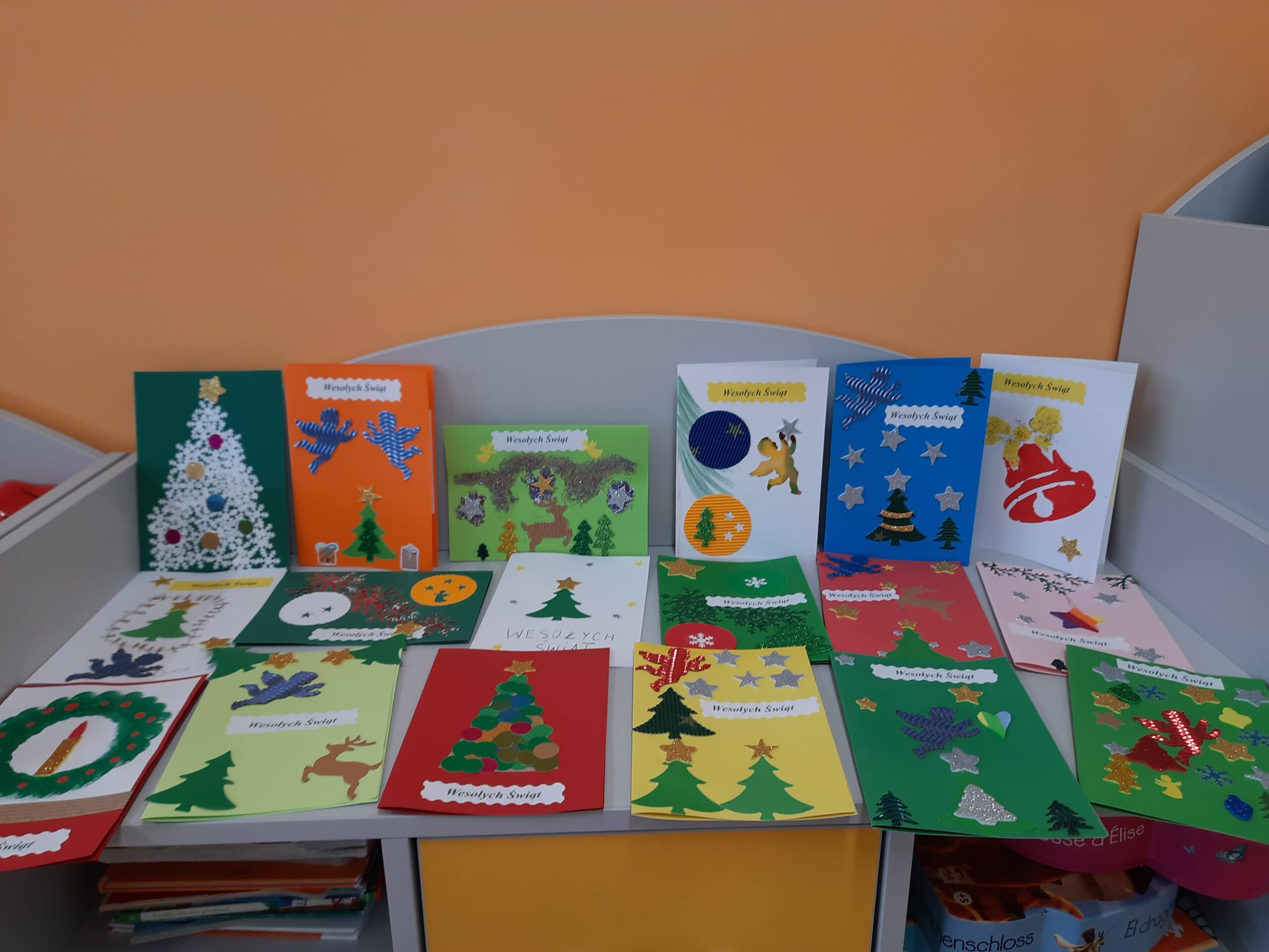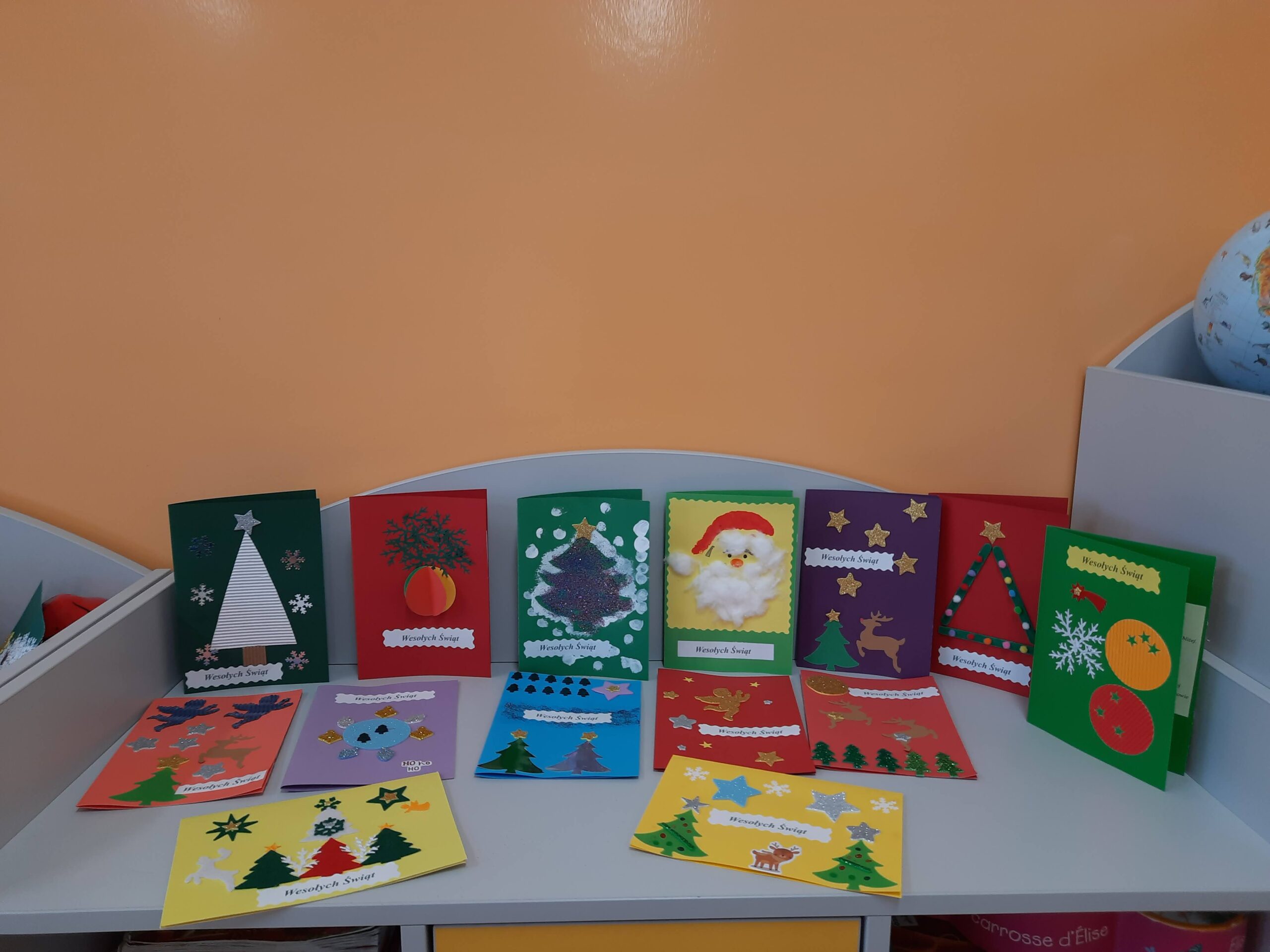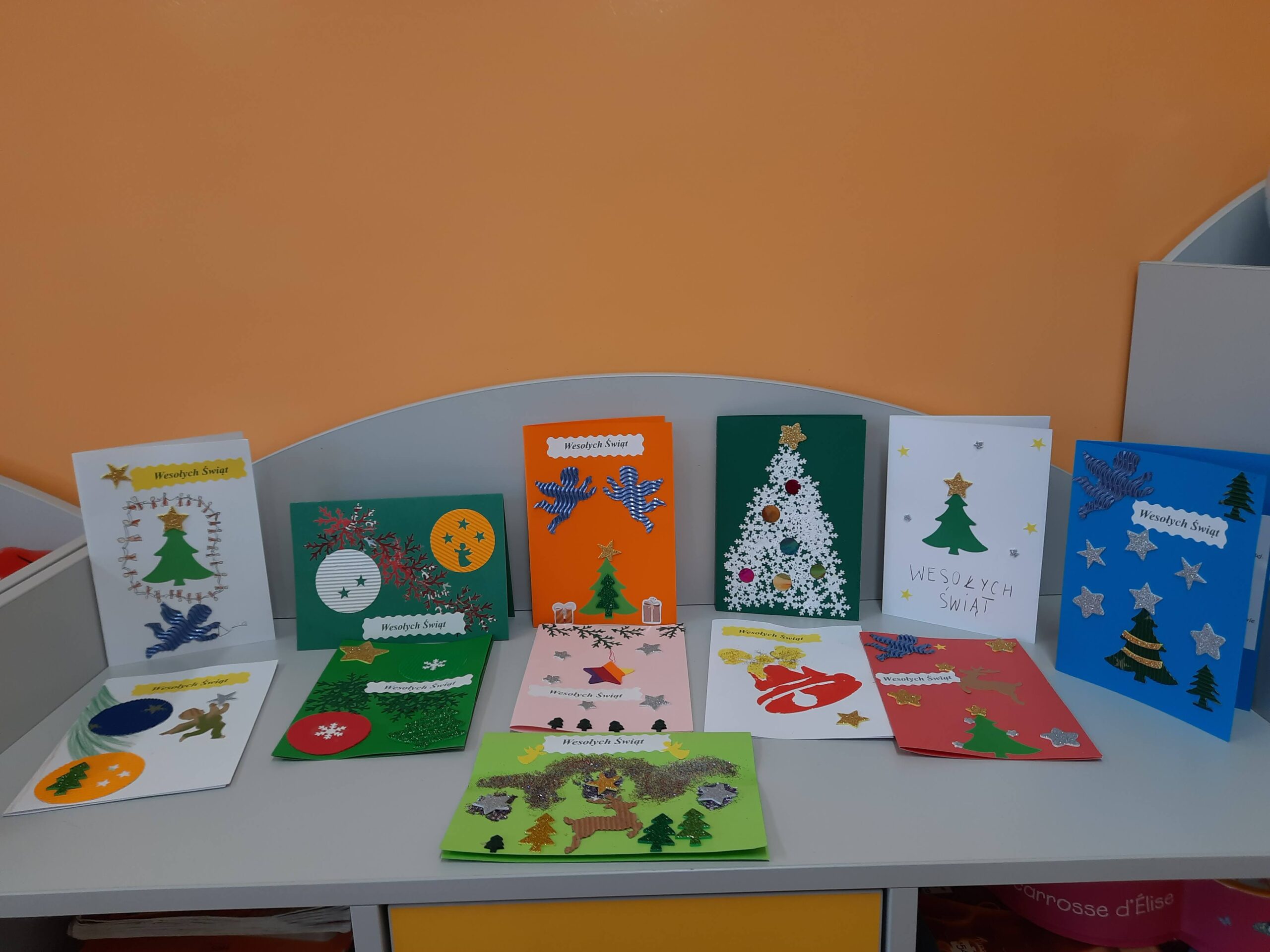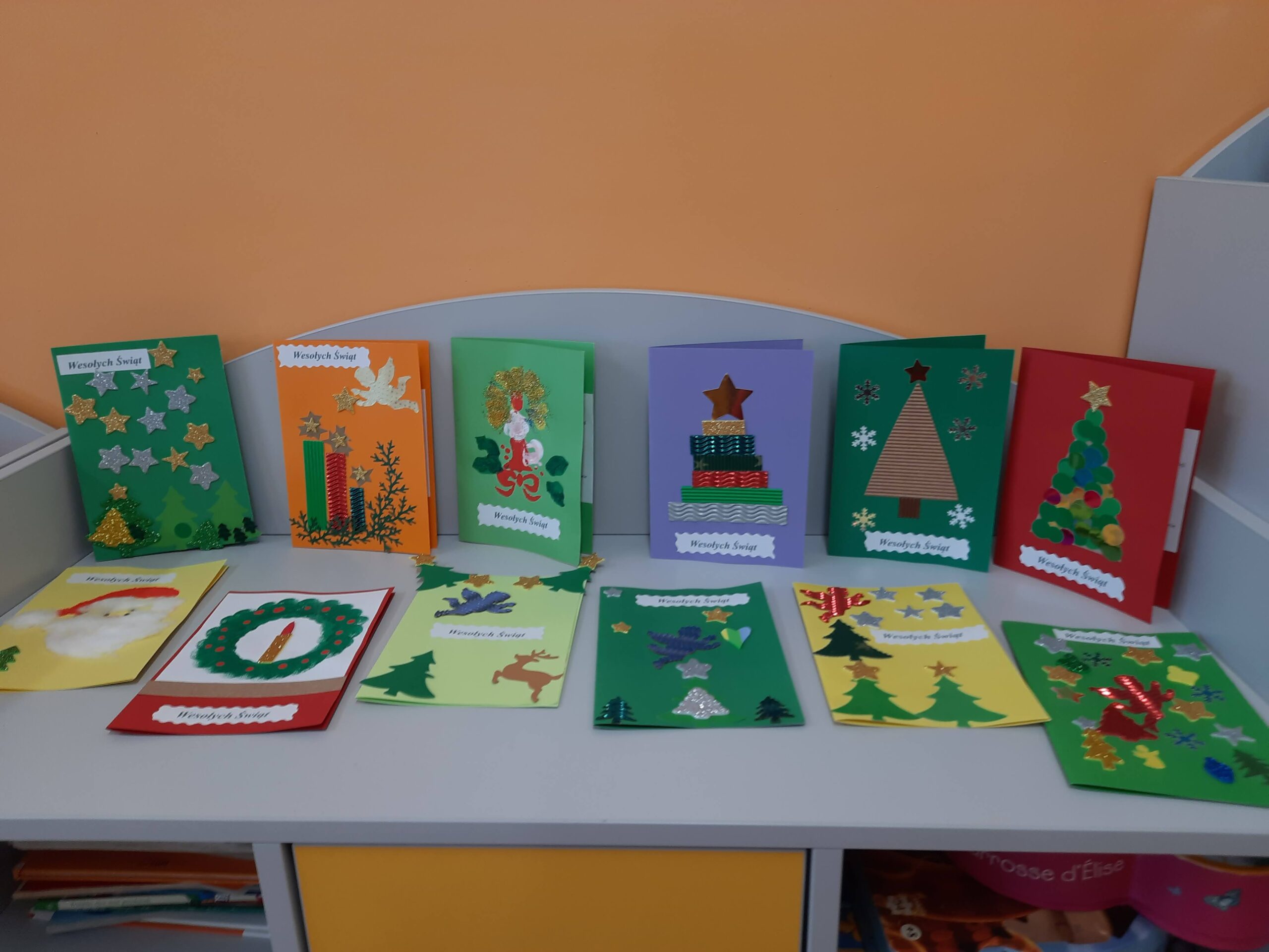 Zbliżające się Święta Bożego Narodzenia są wspaniałą okazją do przypomnienia sobie ponad stuletniej tradycji wysyłania kartek świątecznych z życzeniami. Aby pielęgnować tę przepiękną tradycję przypominającą o magii świąt, w naszej szkole kolejny już rok przedszkolaki z grupy „Szuwarki”, a w tym roku dodatkowo uczniowie klas III uczęszczający do świetlicy szkolnej z ochotą zabrali się do własnoręcznego wykonania kartek. Wspólne warsztatowe spotkanie przebiegało w radosnej atmosferze. Podczas pracy słychać było gwar, wspólne rozmowy i dzielenie się pomysłami. Uczniowie wykazali się niezwykłą kreatywnością i pomysłowością, wykorzystując do tego różnorodne materiały. Magia zbliżających się świąt rzeczywiście zadziałała i powstały przepiękne kartki.