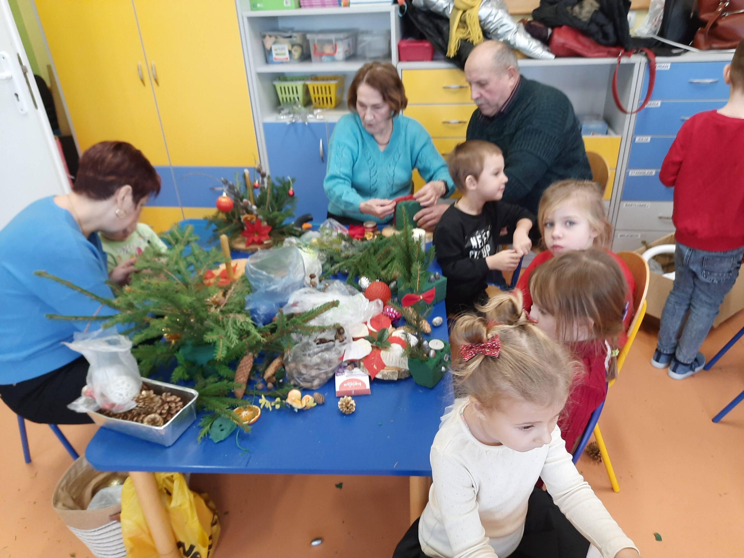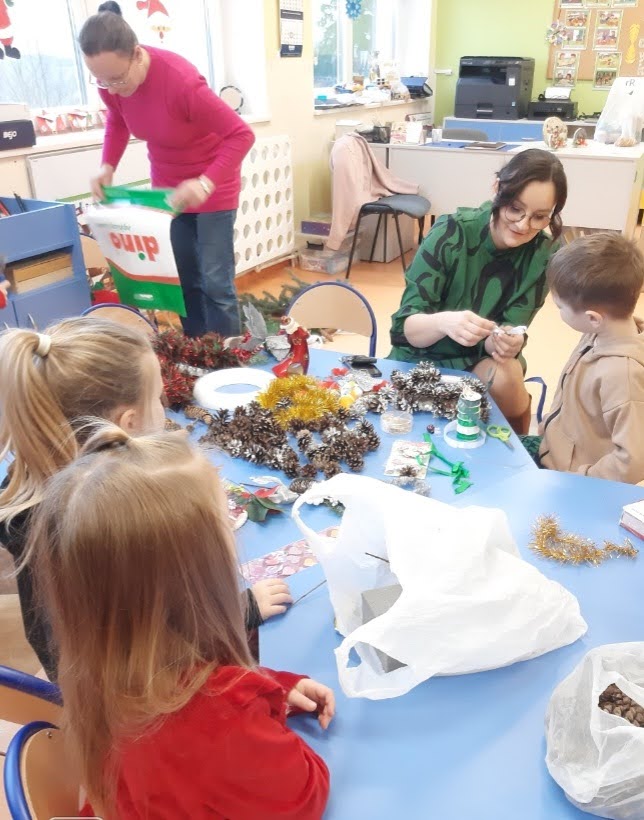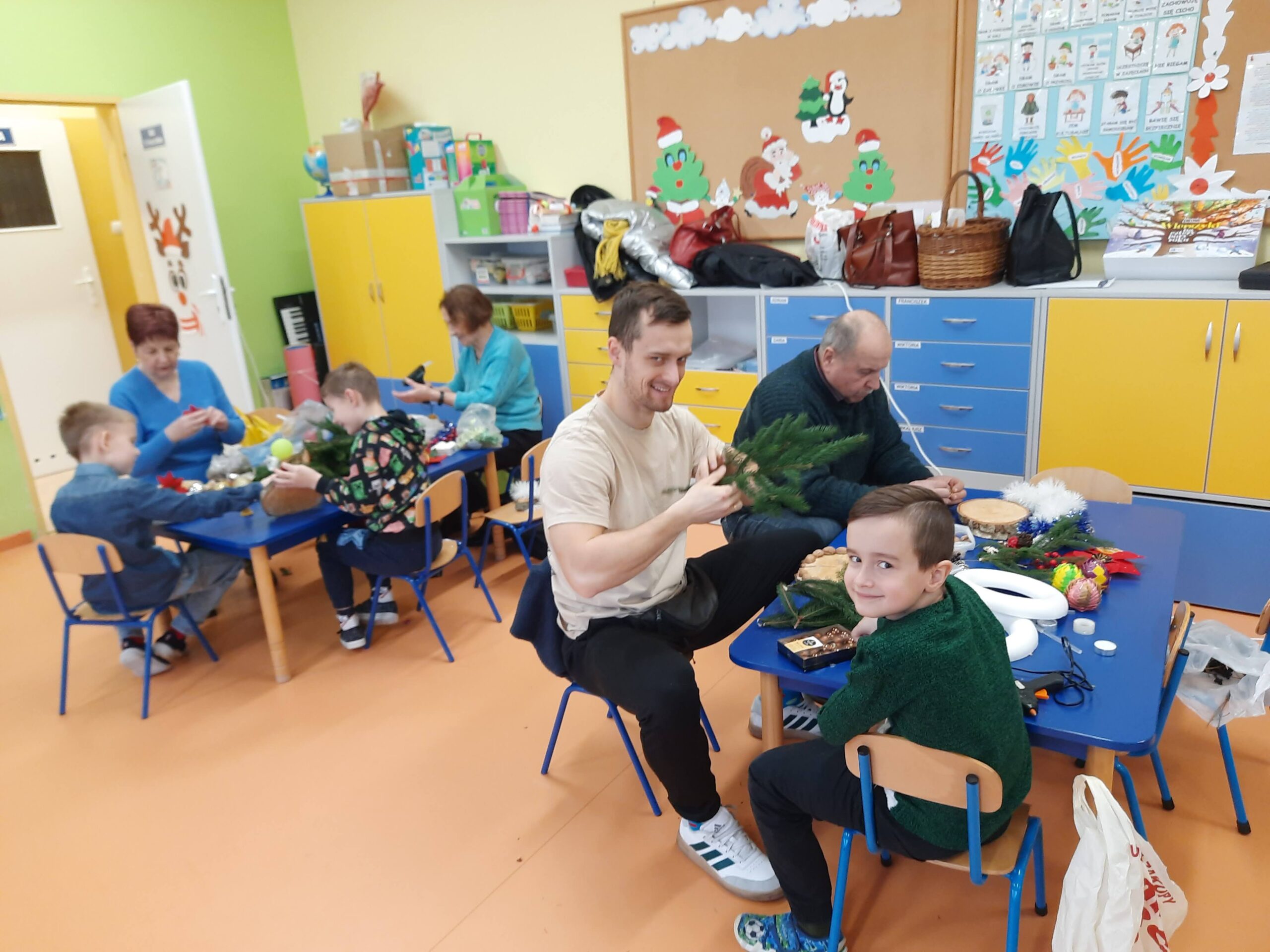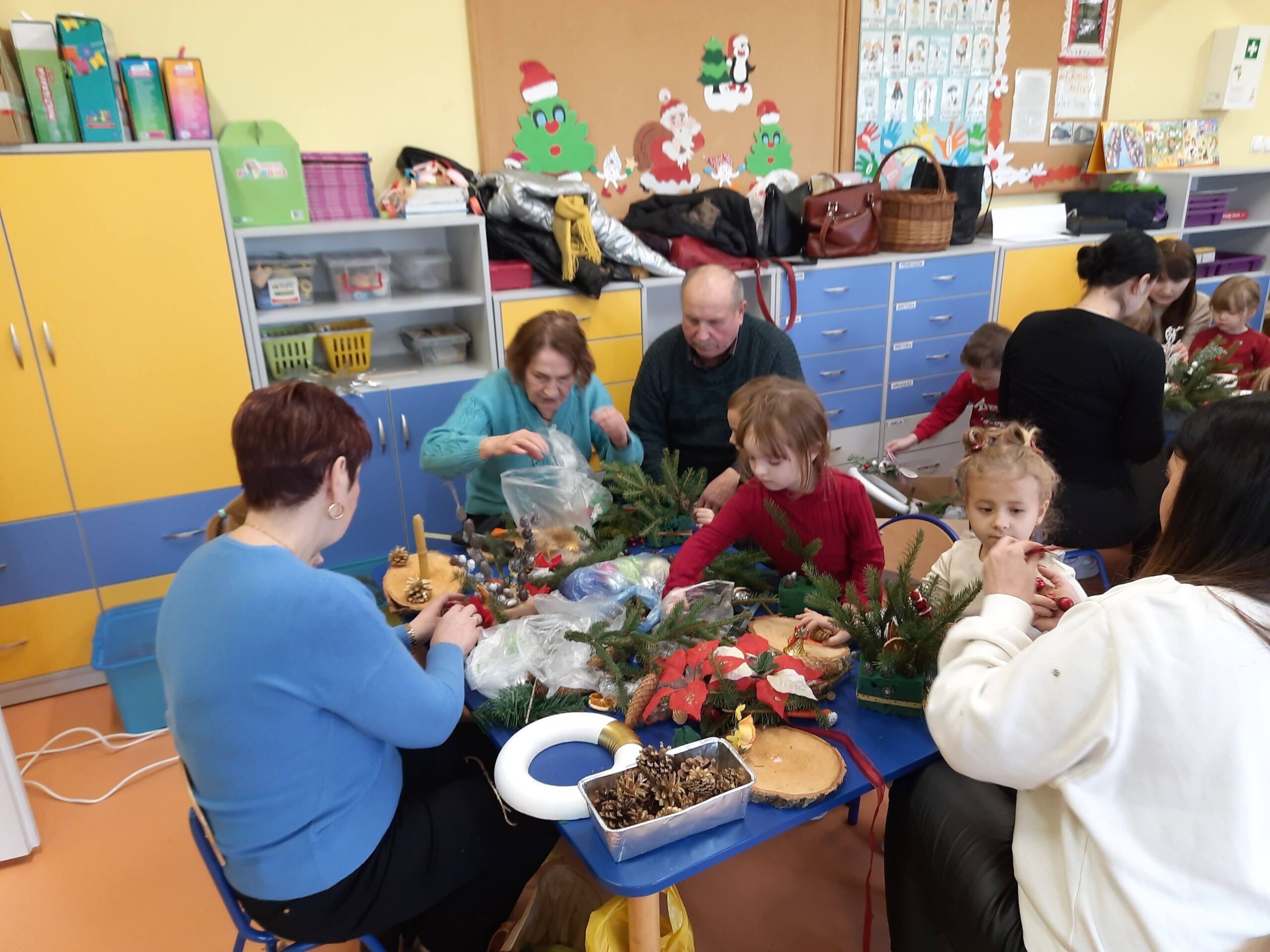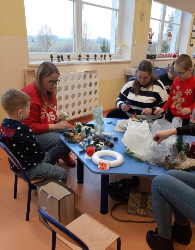 Święta Bożego Narodzenia najczęściej kojarzą się z radością, czasem spędzonym z najbliższymi. W tym szczególnym okresie powinniśmy pamiętać o osobach starszych i samotnych. Dlatego, też w naszej szkole kolejny już raz odbyły się warsztaty bożonarodzeniowe, na których spotkało się kilka pokoleń, żeby wspólnie stworzyć świąteczne stroiki. Na warsztaty zaproszenie przyjęli seniorzy z Gminnej Rady Seniorów oraz rodzice przedszkolaków ze wszystkich grup przedszkolnych.