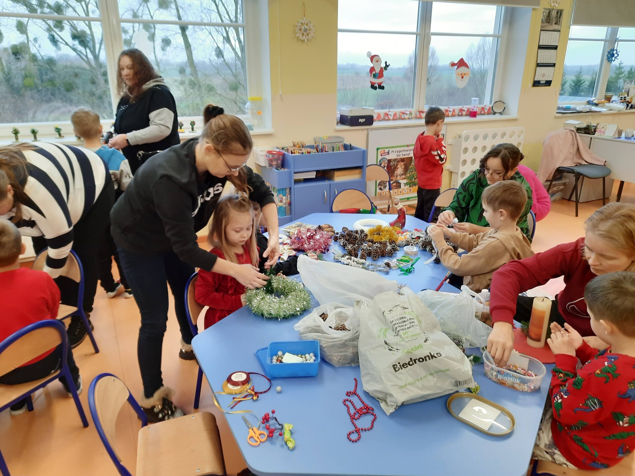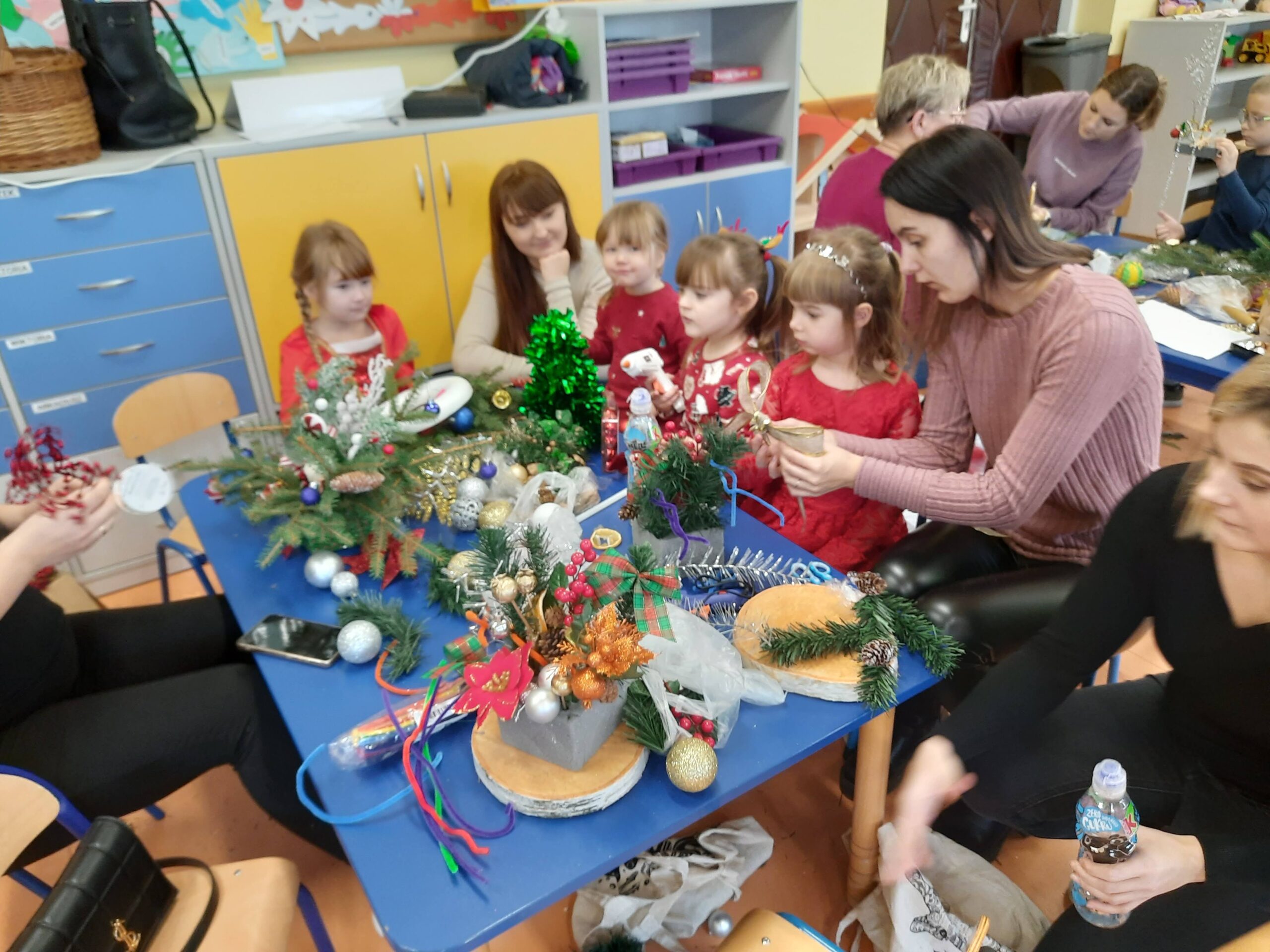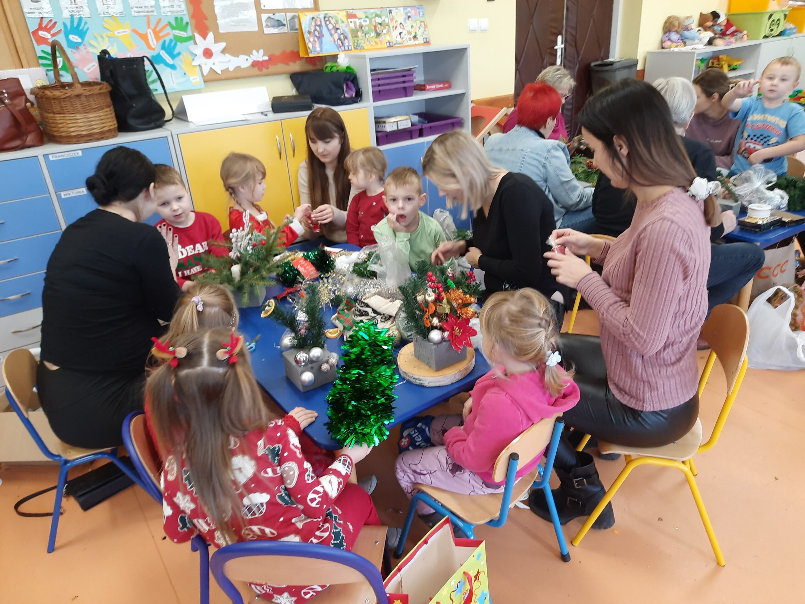 Święta Bożego Narodzenia najczęściej kojarzą się z radością, czasem spędzonym z najbliższymi. W tym szczególnym okresie powinniśmy pamiętać o osobach starszych i samotnych. Dlatego, też w naszej szkole kolejny już raz odbyły się warsztaty bożonarodzeniowe, na których spotkało się kilka pokoleń, żeby wspólnie stworzyć świąteczne stroiki. Na warsztaty zaproszenie przyjęli seniorzy z Gminnej Rady Seniorów oraz rodzice przedszkolaków ze wszystkich grup przedszkolnych.