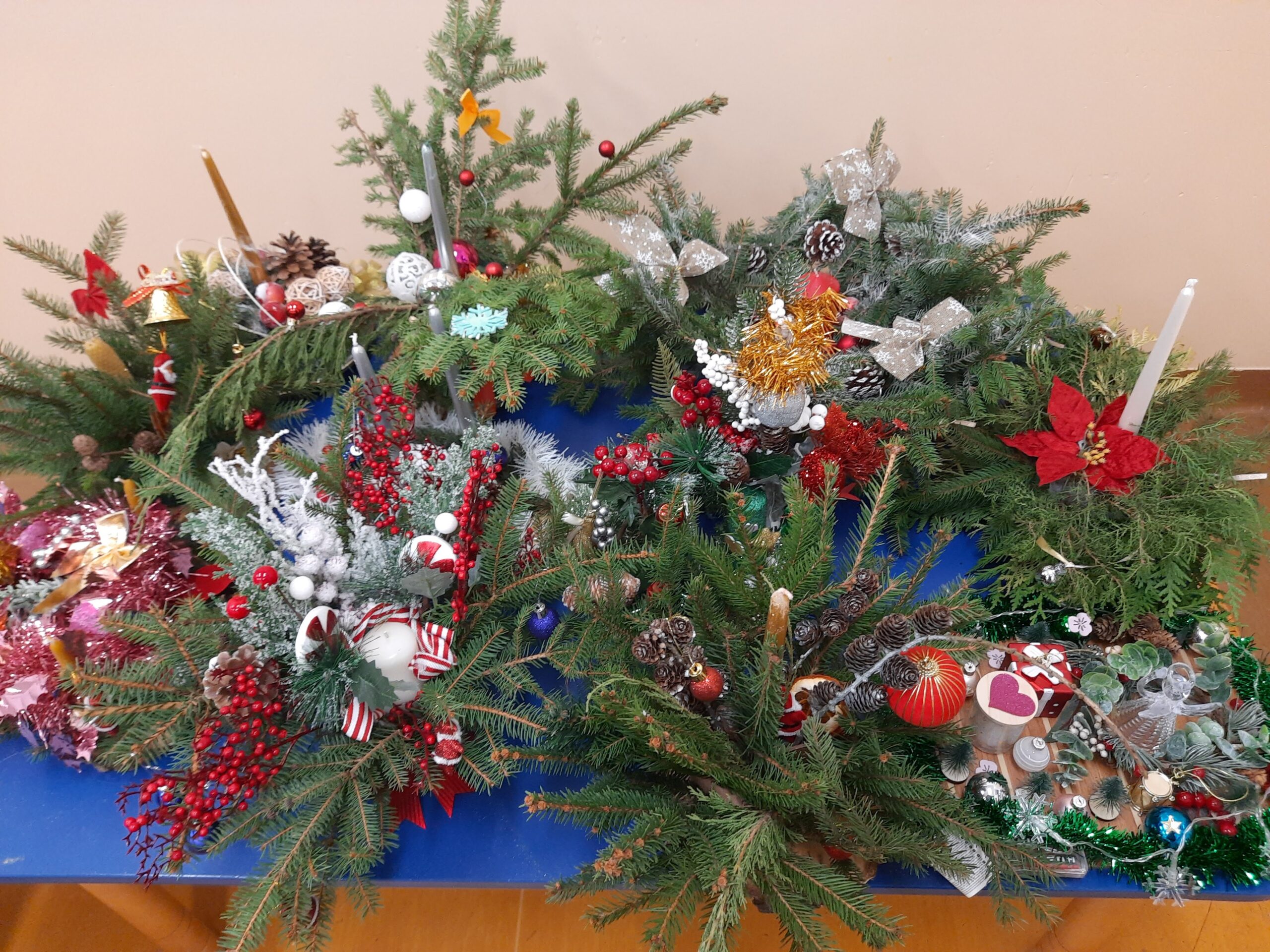W sali wypełnionej zapachem świeżych gałązek świerku zapanował iście świąteczny nastrój. Wszyscy w dobrych nastrojach, pełni zapału zabrali się do pracy. Dzięki zaangażowaniu przybyłych gości powstały przepiękne stroiki, które zostaną podarowane osobom starszym i samotnym z naszej gminy oraz podopiecznym Domu Pomocy Społecznej w Kętrzynie. Pamiętajmy, że nawet mały gest może dostarczyć chwilę radości, tak potrzebną w przedświątecznym okresie.