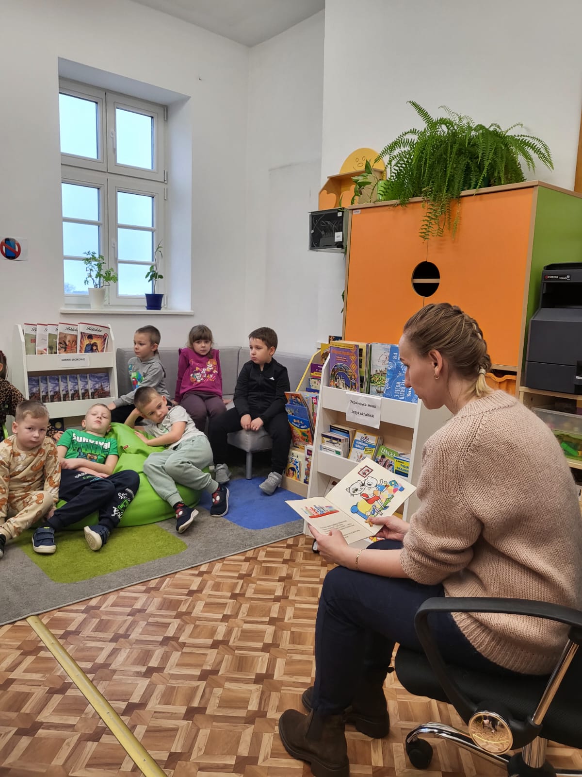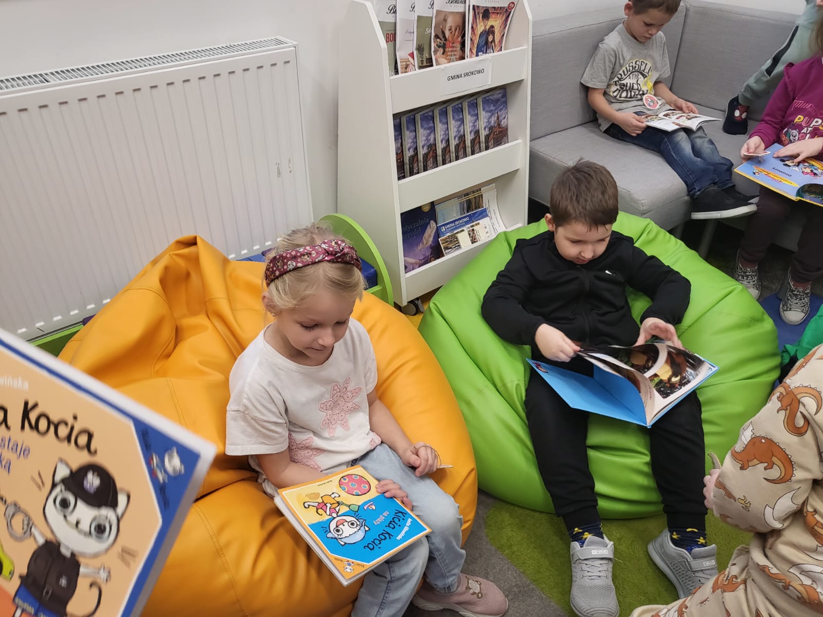 Klasy O a i 0 b rozpoczęły zajęcia lekturą ” Kici Koci w bibliotece” A. Głowińskiej, do której wykonały kartę pracy i kolorowankę. Później porozmawialiśmy o tym, jak powinno się zachowywać w bibliotece i czytelni. Przedszkolaki poznały elementy budowy książki, rodzaje kart bibliotecznych a także dowiedziały się jaka jest najmniejsza i największa książka w bibliotece.