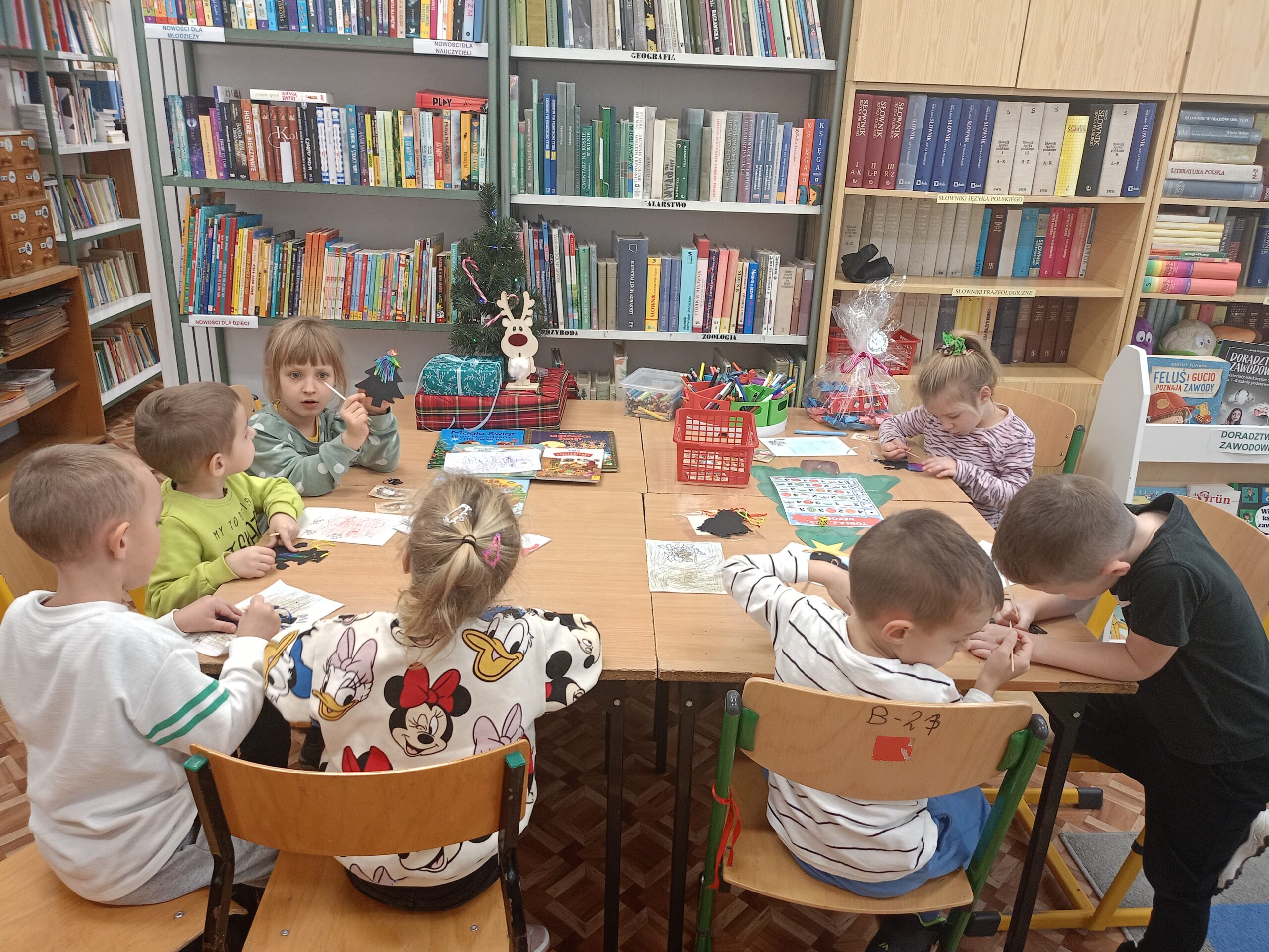 W przedświąteczny czas Bibliotekę Szkolną odwiedziły dzieci z Punktu Przedszkolnego.