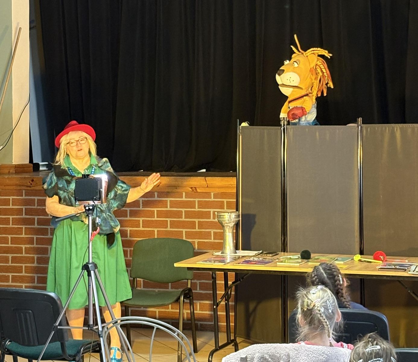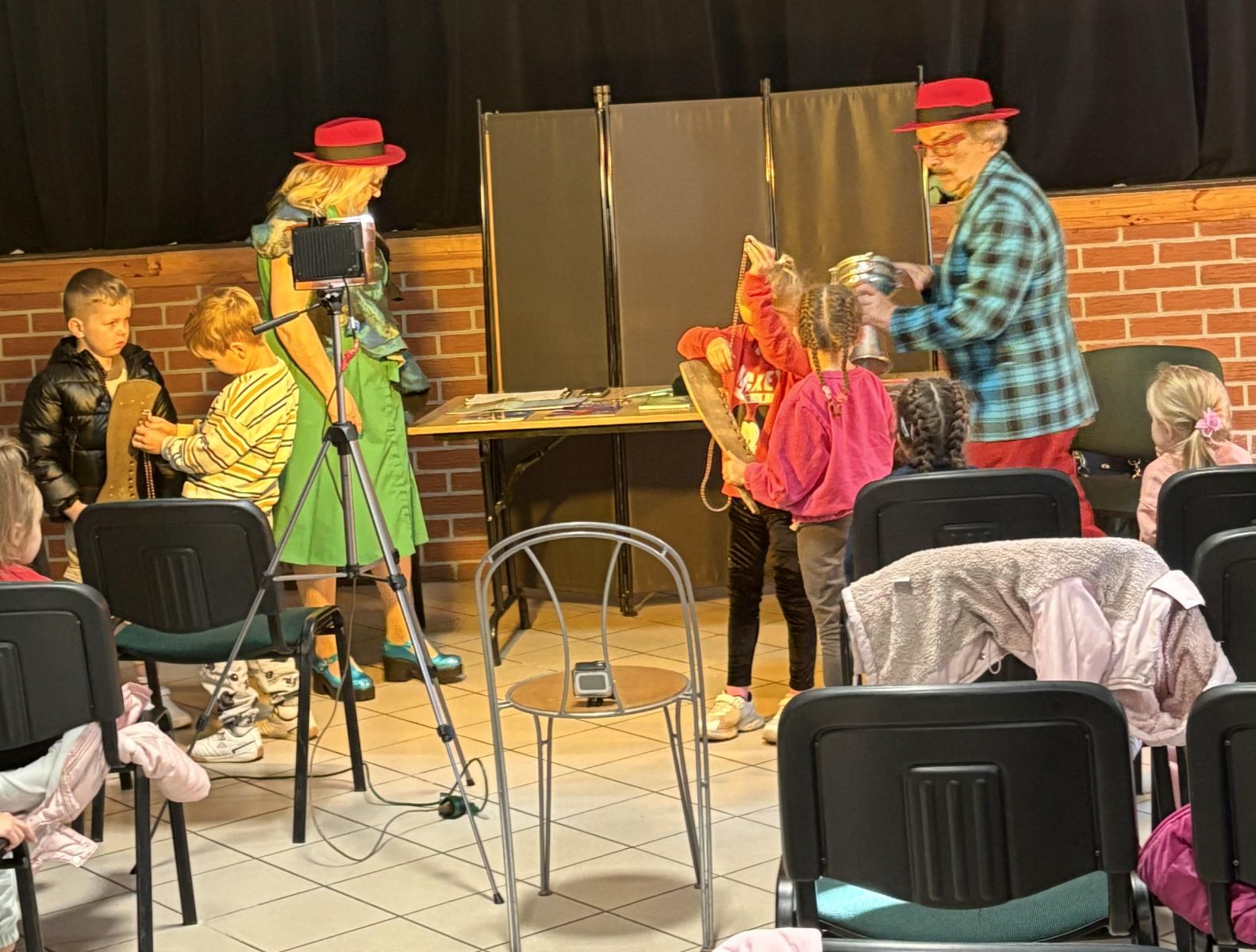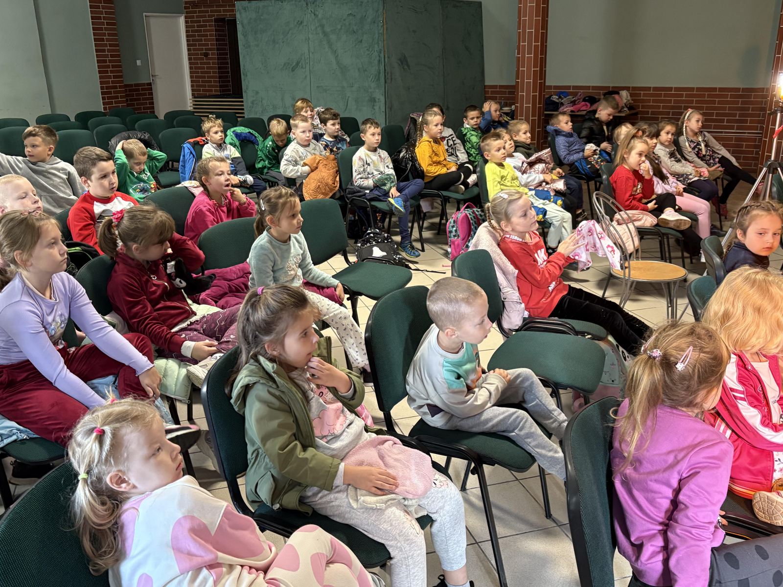Przedszkolaki z grup „0” i „Szuwarki wspólnie z klasami pierwszymi mieli zaszczyt uczestniczyć w spotkaniu autorskim w Gminnym Ośrodku Kultury w Srokowie. Spotkanie prowadzili Mariola Fajak – Słomińska, aktorka, autorka książek dla dzieci, dwukrotna laureatka „Bursztynowego Pierścienia”, reżyserka „Dobranocek” dla dzieci i Janusz Słomiński, aktor, reżyser, laureat wielu nagród i wyróżnień.