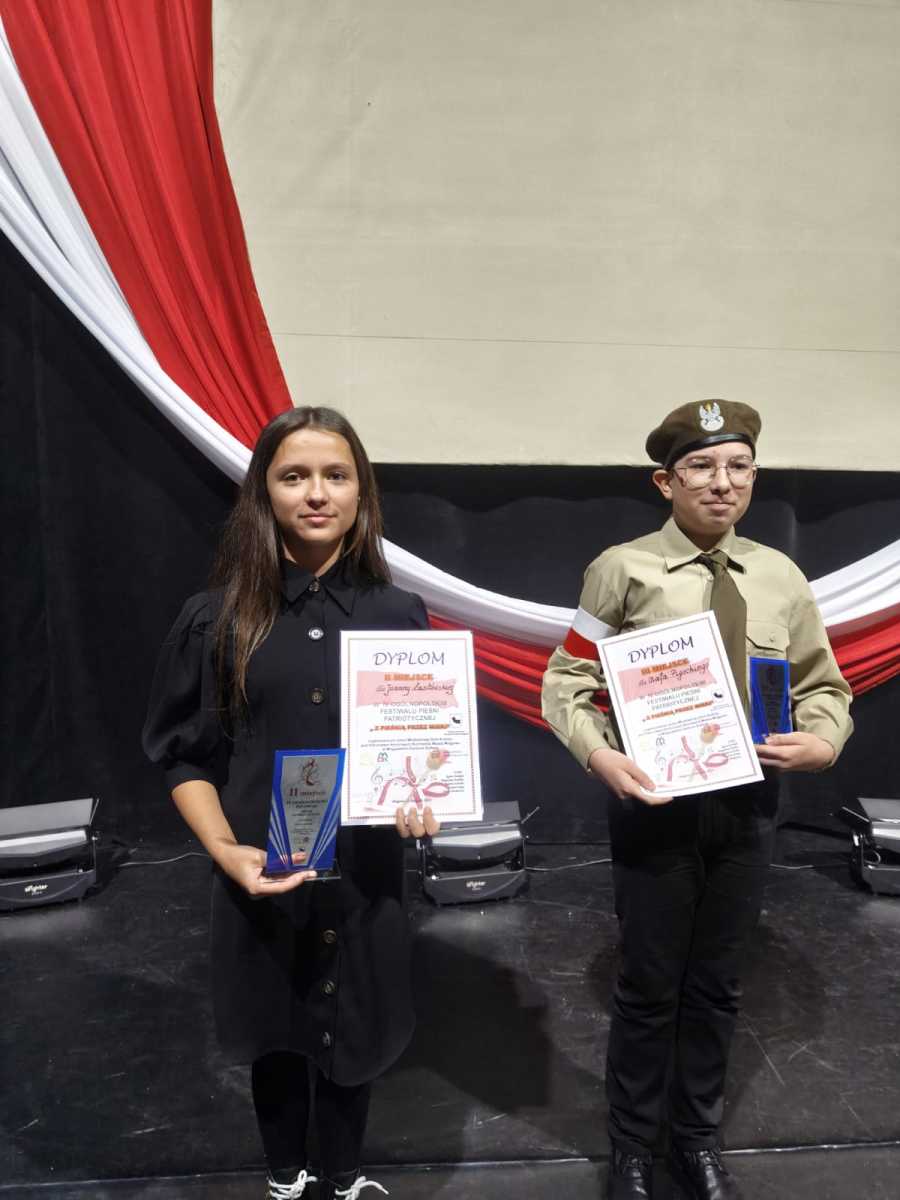 Miło nam poinformować, że uczniowie naszej szkoły uczestniczyli w IV Ogólnopolskim Festiwalu Pieśni Patriotycznej organizowanym przez MDK w Mrągowie. Konkurs odbył się 22 listopada 2025 na scenie wspomnianego domu kultury. Wśród wykonawców Asia Łastówka i Olaf Pigocki z klasy VII Szkoły Podstawowej w Srokowie. W swoich kategoriach Asia uzyskała II, a Olaf III miejsce. To ogromne wyróżnienie, biorąc pod uwagę wysoki poziom artystyczny oraz profesjonalne jury.