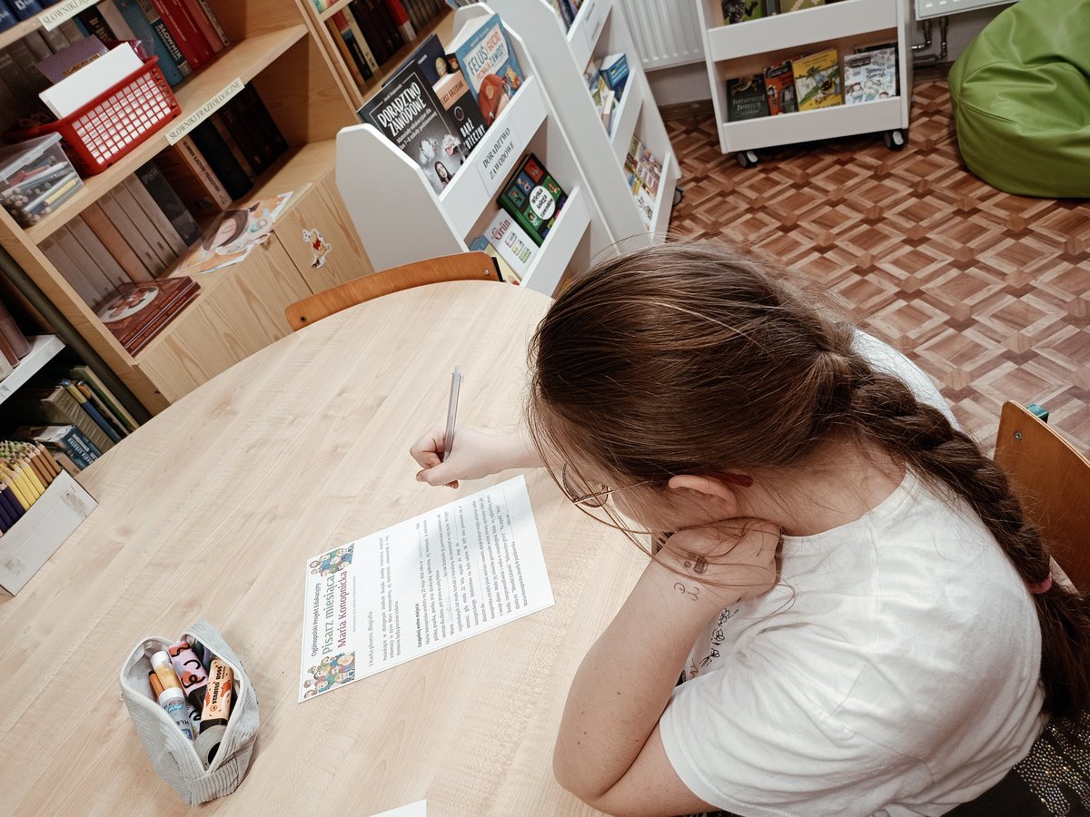 Klasa VIIIb pracowała nad sylwetką Marii Konopnickiej. Uczniowie obejrzeli edukacyjne filmiki o życiu pisarki, ciekawostkach i tematyce jej twórczości, a także poznali historyczne tło powstania „Roty”, w tym strajk dzieci we Wrześni. Następnie uzupełnili Kartę pisarza oraz wykonali zadanie twórcze: napisanie wywiadu z Marią Konopnicką.
