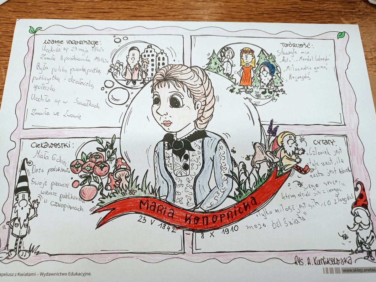Spotkałam się dziś z Marią Konopnicką, jedną z najwybitniejszych polskich pisarek i poetek. Znana jest z wrażliwości na ludzką krzywdę, patriotyzmu oraz walki o prawa kobiet. Przeprowadziłam z nią wywiad i dowiedziałam się wielu ciekawych informacji.
