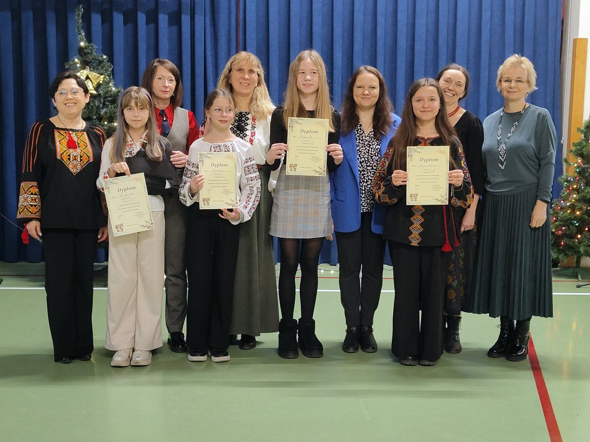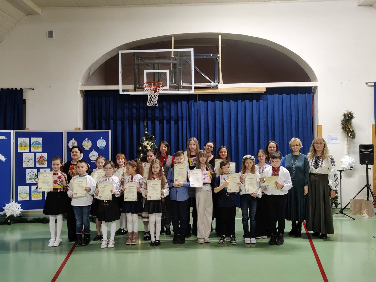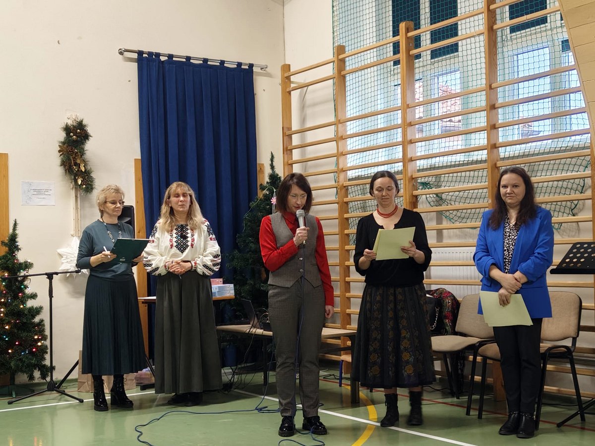 Dzięki inicjatywie uczniów z Ukrainy, dziś, 17grudnia 2025r. odbył się w naszej szkole II Międzyszkolny Konkurs Ukraińskich Kolęd, Pastorałek i Świątecznych Piosenek. Wypełnił szkolne mury świąteczną atmosferą i piękną muzyką. Stawili się młodzi artyści ze szkół w Barcianach, Kruklankach, Węgorzewie oraz ze Srokowa. Przy dźwiękach kolędy „Dobryj weczir, Tobi …” prowadzące przywitały wszystkich przybyłych. Następnie głos zabrała pani dyrektor Karolina Andruszkiewicz, która życzyła sukcesów wszystkim wykonawcom, miłego odbioru widzom i owocnej pracy komisji.