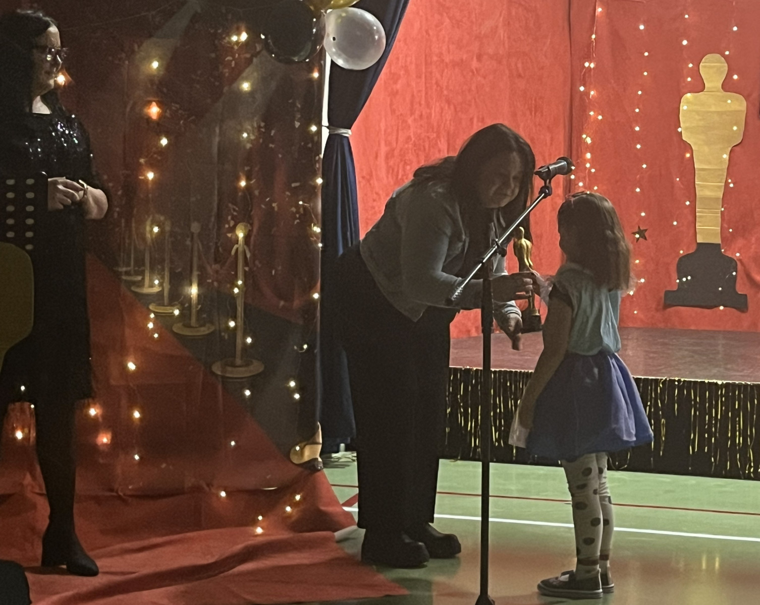 Do wręczania Oscarów zaproszeni zostali m.in. pani dyrektor, pani wicedyrektor, przewodnicząca Samorządu Uczniowskiego, przedstawiciel Rady Rodziców, uczennica z najwyższą średnią ocen w szkole oraz uczennica odnosząca sukcesy sportowe na szczeblu krajowym. Statuetki trafiały do poszczególnych klas oraz grup przedszkolnych, które po odebraniu nagród prezentowały swoje talenty w występach tanecznych i wokalnych inspirowanych znanymi filmami i bajkami, a także znanymi przebojami muzycznymi. Każdy występ był wyjątkowy i spotykał się z entuzjastycznym aplauzem publiczności.