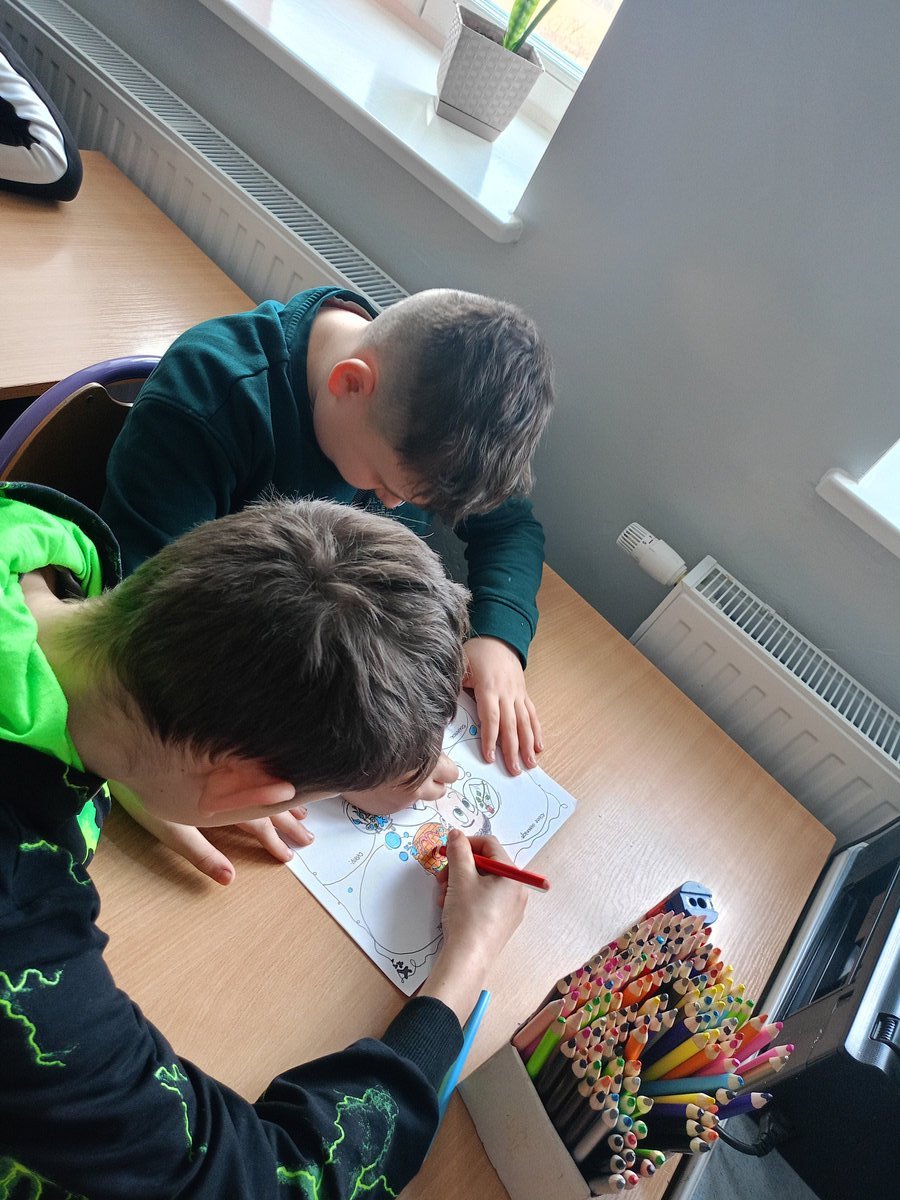 Uczniowie naszej szkoły po raz kolejny wzięli udział w zajęciach realizowanych w ramach projektu „Pisarz miesiąca”. Tym razem klasa VI b pochyliła się nad sylwetką Krzysztofa Kamila Baczyńskiego – wybitnego poety pokolenia wojennego. Dzięki obejrzanym materiałom filmowym uczniowie dowiedzieli się, jak ewoluowały poglądy Baczyńskiego oraz poznali ważne fakty z jego życia. Szczególne zainteresowanie wzbudziła informacja, że uczęszczał do tego samego liceum, co bohaterowie książki „Kamienie na szaniec” – Alek, Rudy i Zośka, których uczniowie będą poznawać w VIII klasie na języku polskim. Podczas zajęć szóstoklasiści zapoznali się także z pojęciem katastrofizmu w literaturze oraz poznali poruszającą historię miłości Krzysztofa Baczyńskiego i Barbary Drapczyńskiej. Tradycyjnie uczniowie uzupełnili kartę pisarza oraz ciekawostki dotyczące jego życia, a także wykonali i pokolorowali sketchnotkę. Duże emocje wzbudziła opowieść o chorowitym, wrażliwym poecie, który mimo słabego zdrowia zdecydował się chwycić za broń i stanąć do walki w obronie Warszawy podczas II wojny światowej. Uczniowie z uwagą wysłuchali również współczesnych interpretacji utworów Baczyńskiego w wykonaniu Sanah, m.in. „Elegii o chłopcu polskim”, „Bajki” oraz „Pisz do mnie listy”. W ramach zadania twórczego uczniowie przygotowali plakaty przedstawiające Baczyńskiego jako człowieka o dwóch obliczach – wrażliwego artysty i młodego żołnierza. Zastanawiali się, czy te role się wykluczają, zwłaszcza że poeta był wielokrotnie namawiany przez bliskich i przełożonych, by nie brał udziału w walce i zamiast tego wspierał naród swoją twórczością. Szóstoklasiści wypisywali cechy, jakie mógł posiadać Baczyński jako poeta i jako żołnierz, oraz rysowali symbole kojarzące się z obiema tymi rolami. Odpowiedź na postawione pytanie okazała się nieoczywista i stała się punktem wyjścia do ciekawej dyskusji.