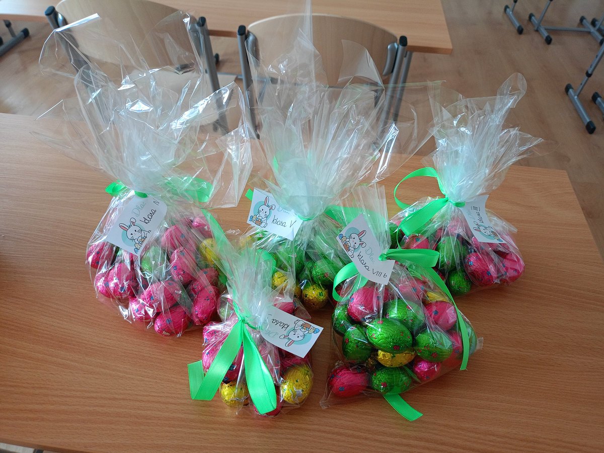 W różnych salach lekcyjnych na uczniów czekały ukryte przez „wielkanocnego zajączka” słodkie upominki. Do każdej klasy trafił specjalny list z zagadką, który naprowadzał na miejsce ukrycia niespodzianki. Młodsi uczniowie korzystali z prostych wskazówek, natomiast starsi musieli wykazać się sprytem, logicznym myśleniem, a czasem nawet rozwiązać matematyczne zadanie. Nie zapomniano również o nauczycielach — także w pokoju nauczycielskim czekała mała, słodka niespodzianka, oczywiście z odpowiednią podpowiedzią😊
