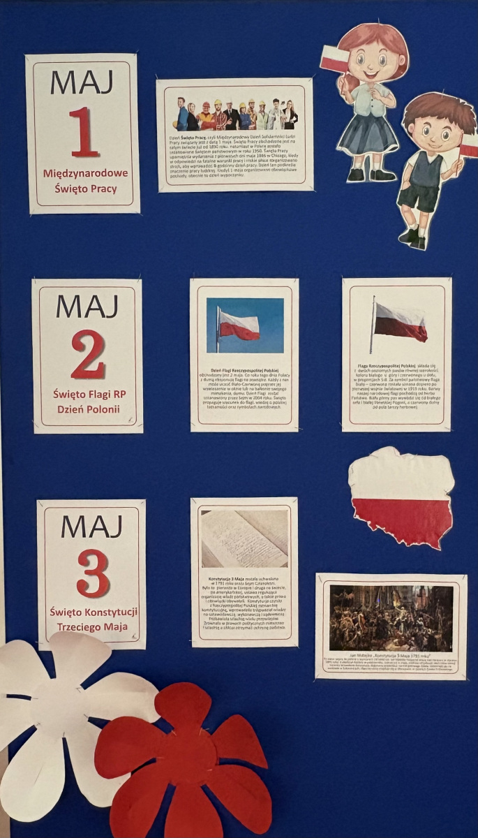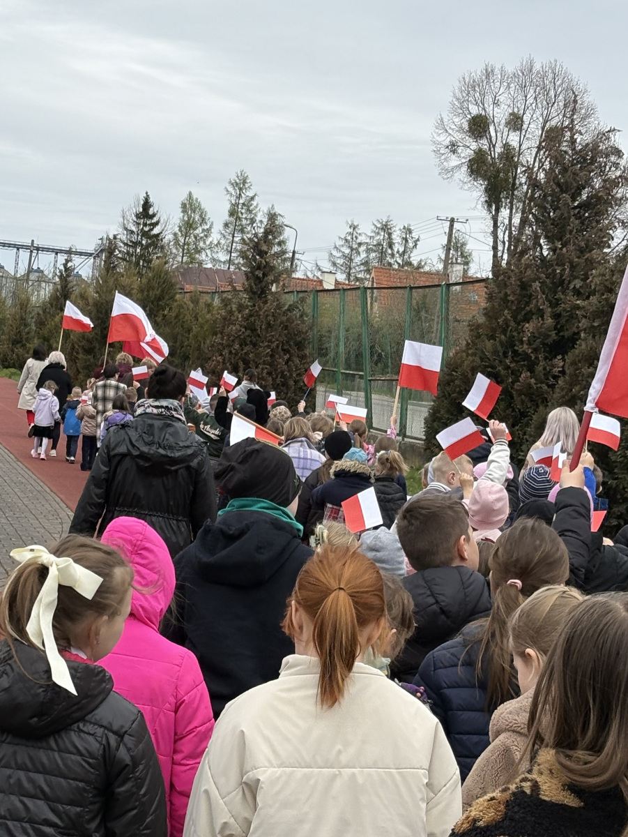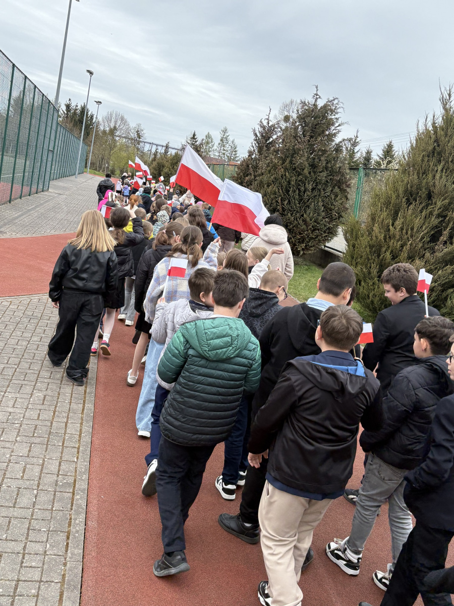 W naszej szkole w dniu 30 kwietnia odbyło się spotkanie z okazji świąt majowych 1 maja -ŚWIĘTO PRACY, 2 maja- DZIEŃ FLAGI i 3 maja – ŚWIĘTO KONSTYTUCJI z 1791 r. Społeczność szkolna zebrała się na placu przed szkołą i odśpiewała Hymn Państwowy tak, jak za każdym razem a cappella. To sprawia, że dreszcze przechodzą po całym ciele. W tym roku obchodzimy 235. rocznicę uchwalenia Konstytucji 3 Maja. Przypomnieliśmy sobie wszyscy tę historyczną chwilę. Po zaśpiewaniu pieśni „Witaj majowa jutrzenko” uczniowie i nauczyciele przemaszerowali po szkolnym terenie z biało-czerwonymi flagami. Był to przepiękny widok.